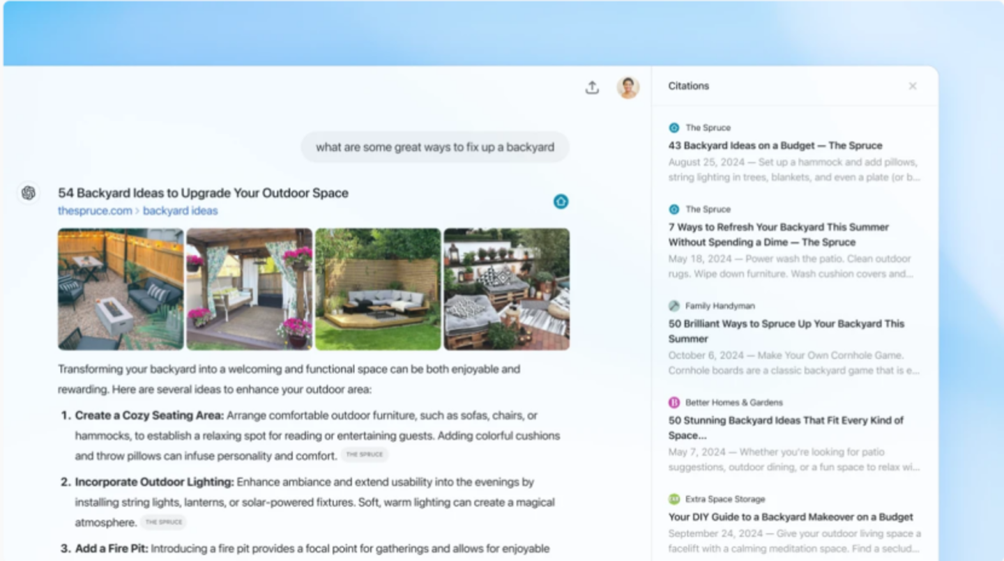 从官方释放的展示效果来看,ChatGPT搜索的体验是不错的。