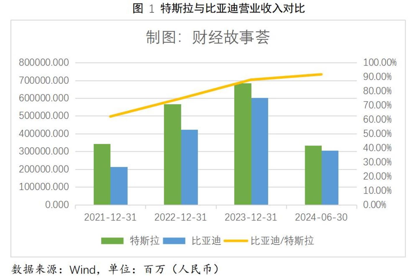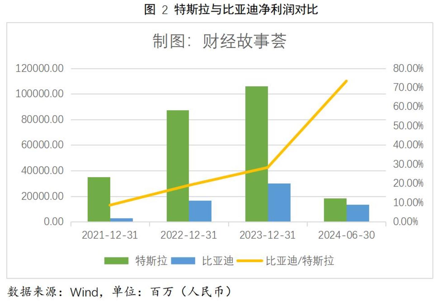 如果光看市值对比,可能会想当然认为,比亚迪和特斯拉在收入和利润上差距显著。放在3年前,确实如此。
