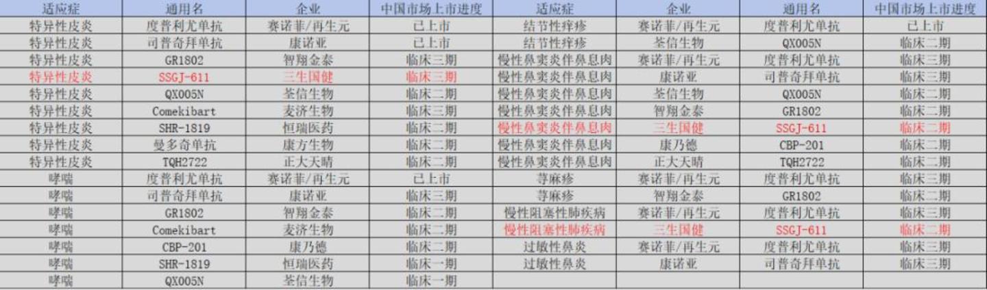 类似的情况还发生在611身上。9月12日,康诺亚司普奇拜单抗获批上市,用于治疗外用药控制不佳或不适合外用药治疗的成人中重度特应性皮炎,成为国产首款获批的IL-4R抗体药物,也是全球第二款。而且,康诺亚是和石药集团进行的合作,由石药集团进行该药物的商业化落地。还有其他企业的IL-4R类药物也在抓紧临床中,这都将是未来三生国健的市场对手。