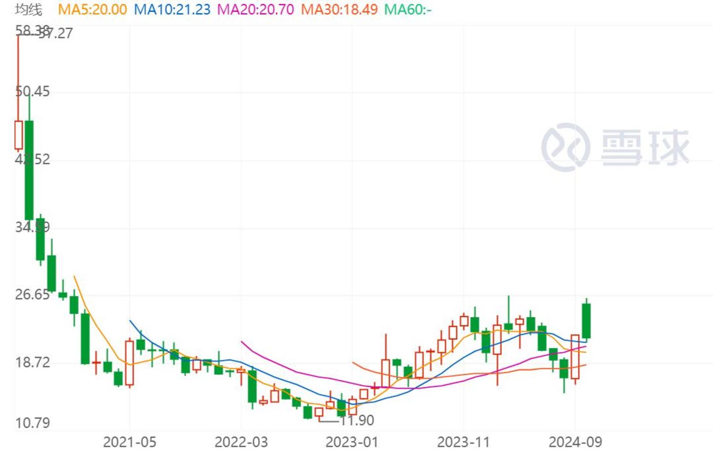 然而,这也成为三生国健又一个开局即巅峰的历史画面。自此之后,三生国健的股价一路向下,上市三个月后就跌破发行价,至2022年更是跌至11.9元的历史新低,即使到目前它的股价也未恢复至发行价水平。