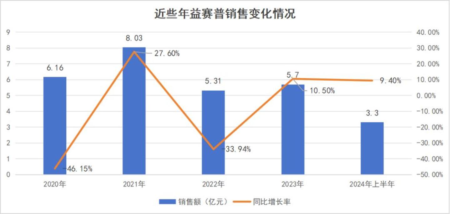 在过去近二十年时间中,益赛普撑起了三生国健的全部预期。凭借先发优势和显著的临床效果,益赛普2005年上市之后,迅速走出了一条漂亮的上行曲线。这种增长趋势一直延续到2019年,当年益赛普创下了11.44亿元的销售巅峰。