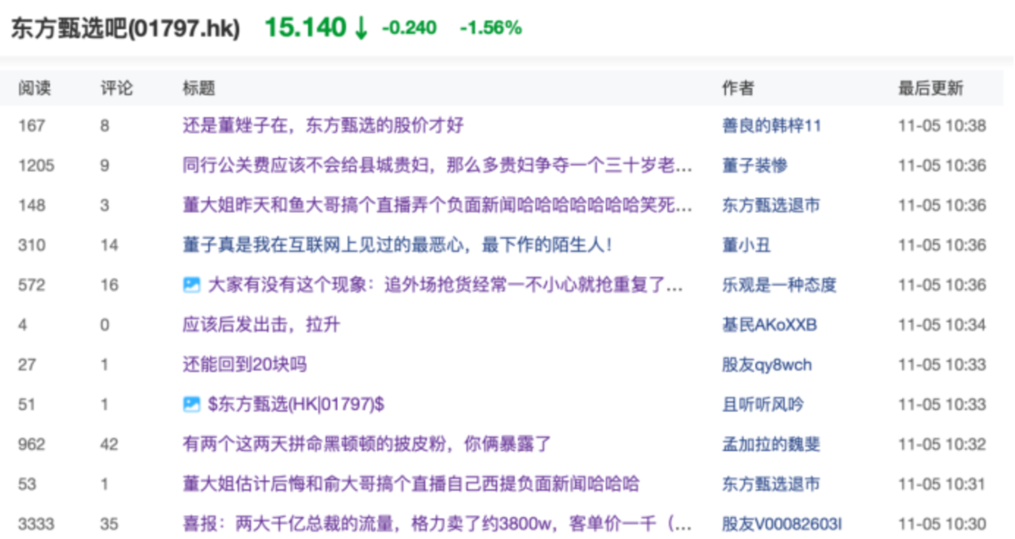 △东方甄选股吧下,舆论纷争仍然在继续,东方财富网截图