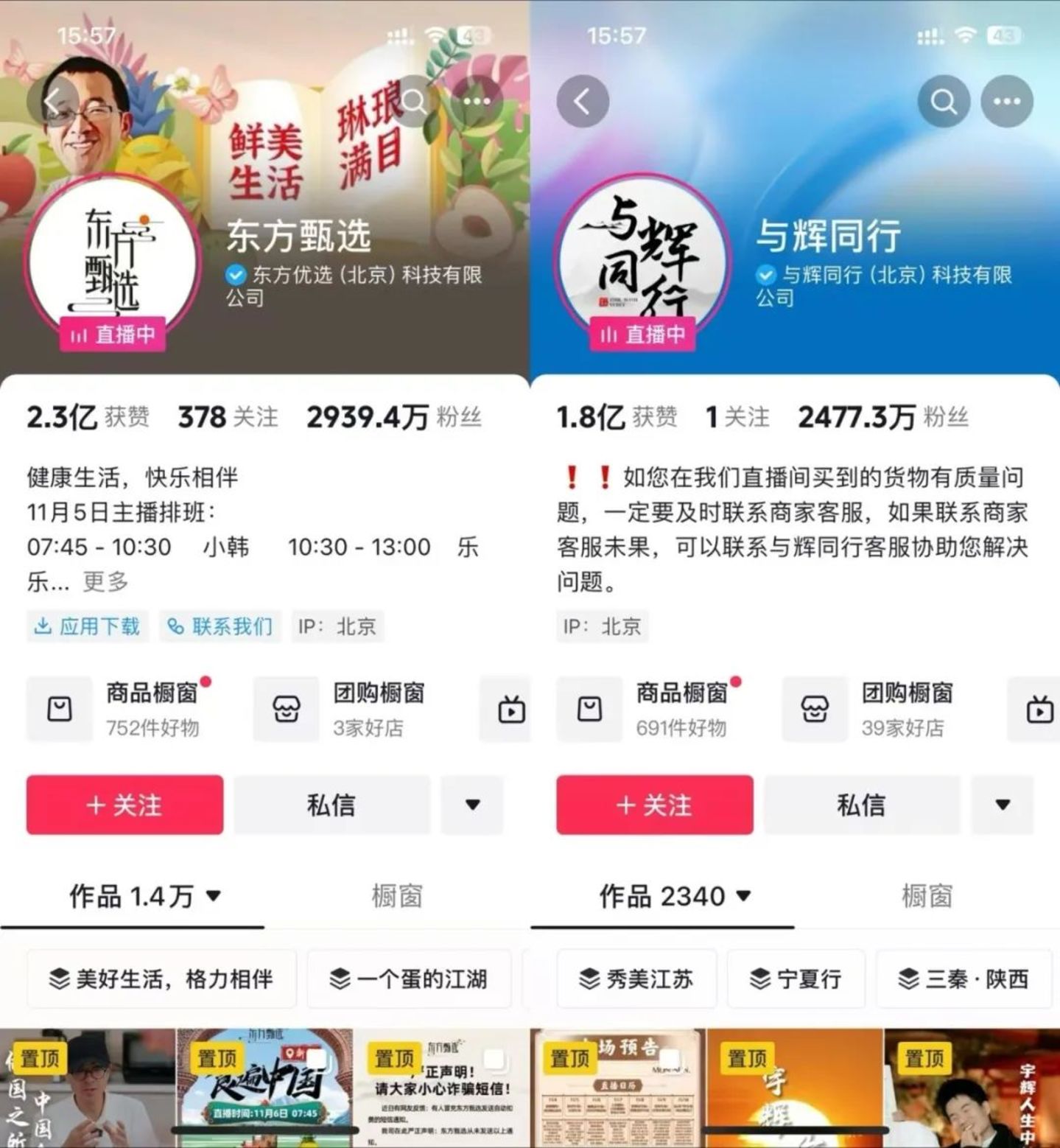 两种路线好坏不论,但的确给两者带来了不同的局面。东方甄选、与辉同行,正走在两条路上越行越远。