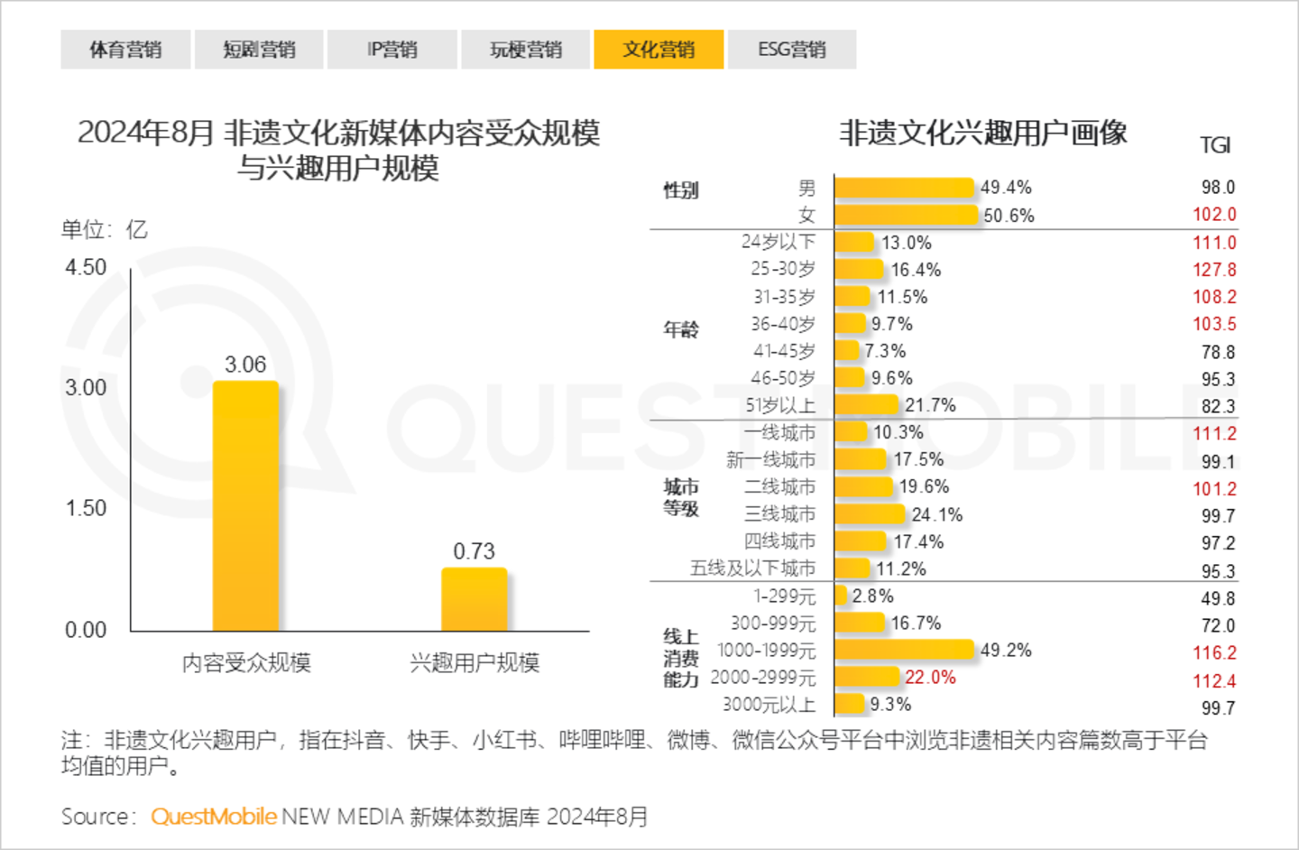 4.9 近年来人们对非遗文化愈发关注,非遗文化兴趣群体中,发达城市及高消费特征显著,为品牌营销提供坚实基础