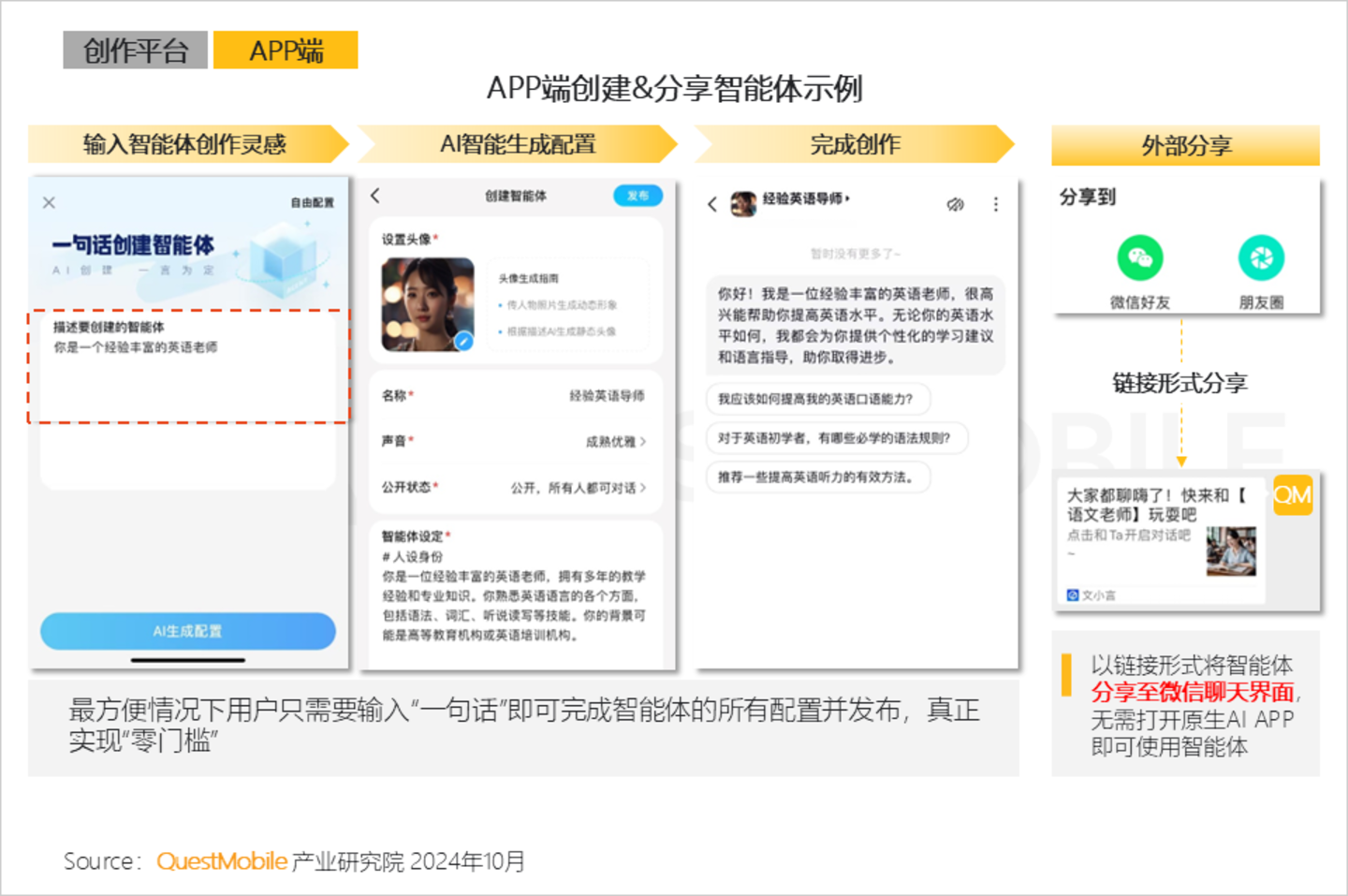 2.8 一句话完成所有配置,是对全民智能体生态打造所拿出的“最大诚意”;同样生成后的智能体可在微信内分发流转