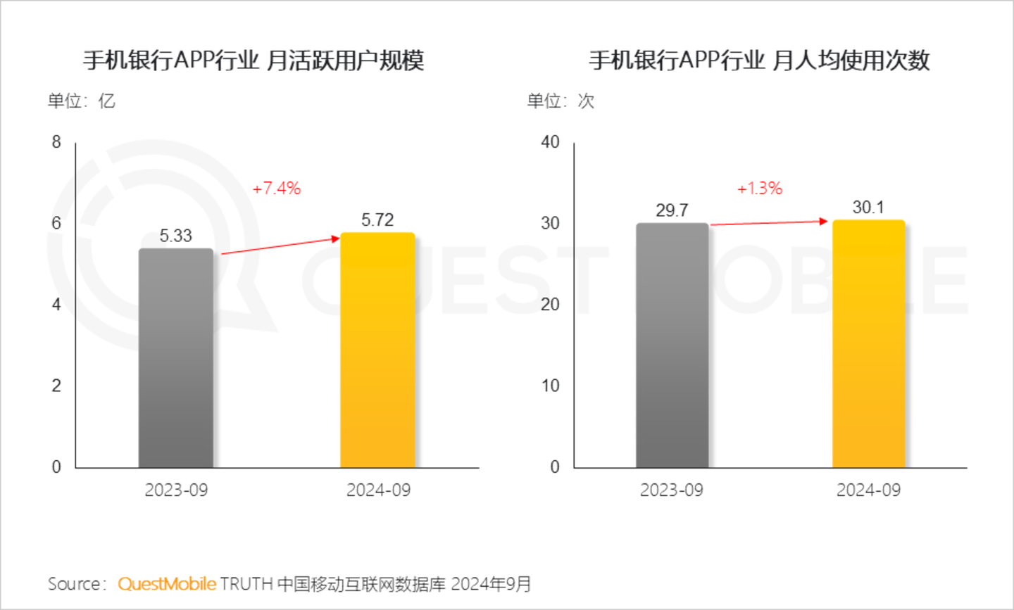 Ⅱ. 大数据、人工智能等技术的加持下,手机银行APP在智能化服务方面不断升级,提升了用户使用体验,用户规模逐步扩大,月人均使用次数也有所增长