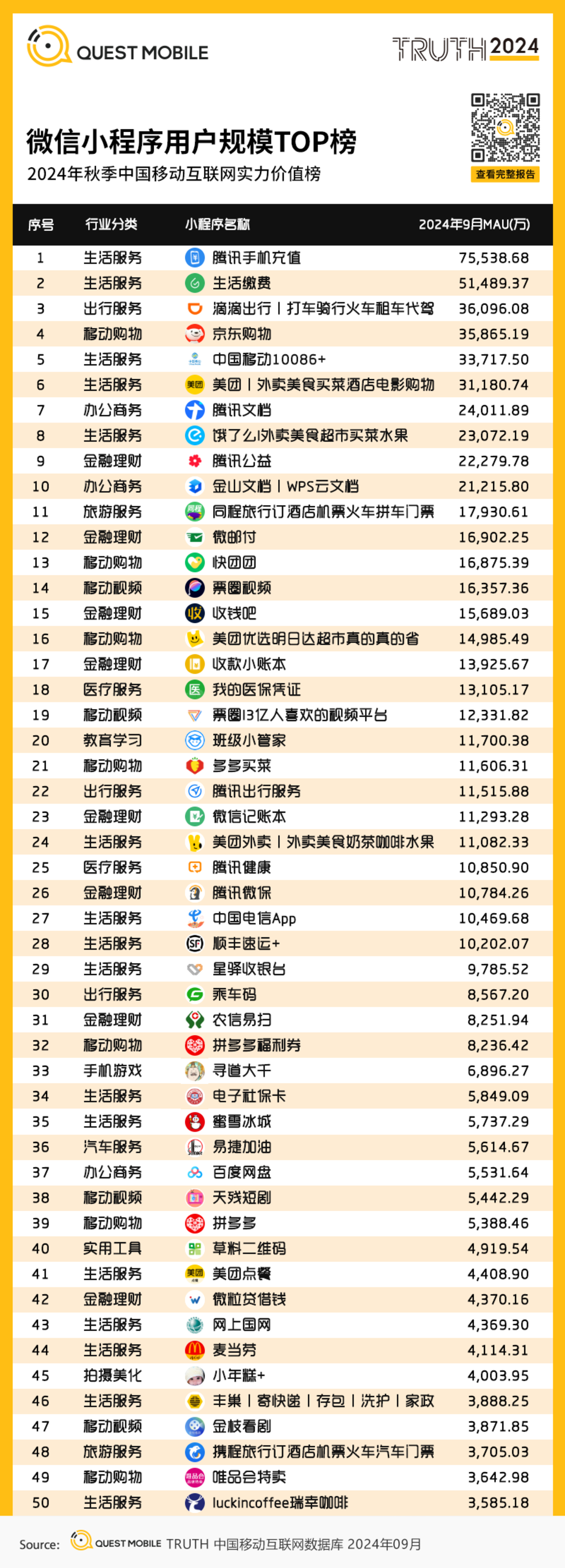 3、微信小程序用户规模TOP榜