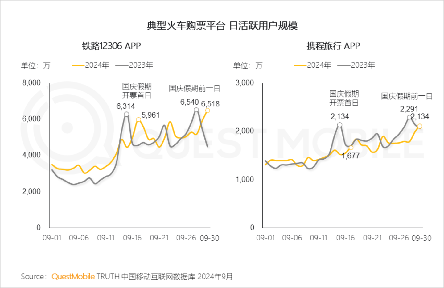 Ⅱ. 由于去年中秋国庆假期“合体”连放,今天国庆假期购票期间,铁路12306、携程旅行APP活跃用户与去年相比有所下降