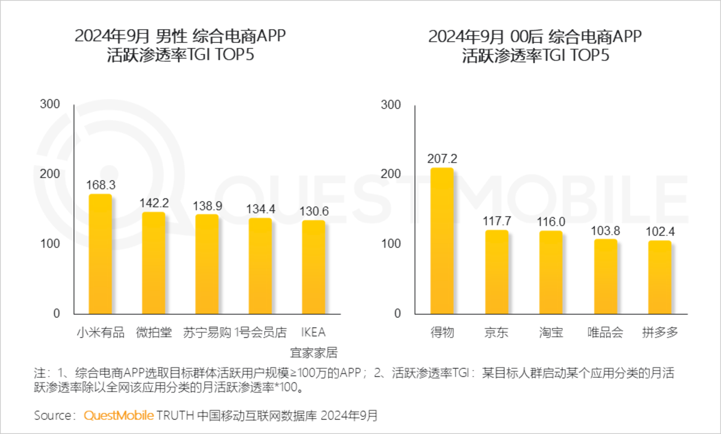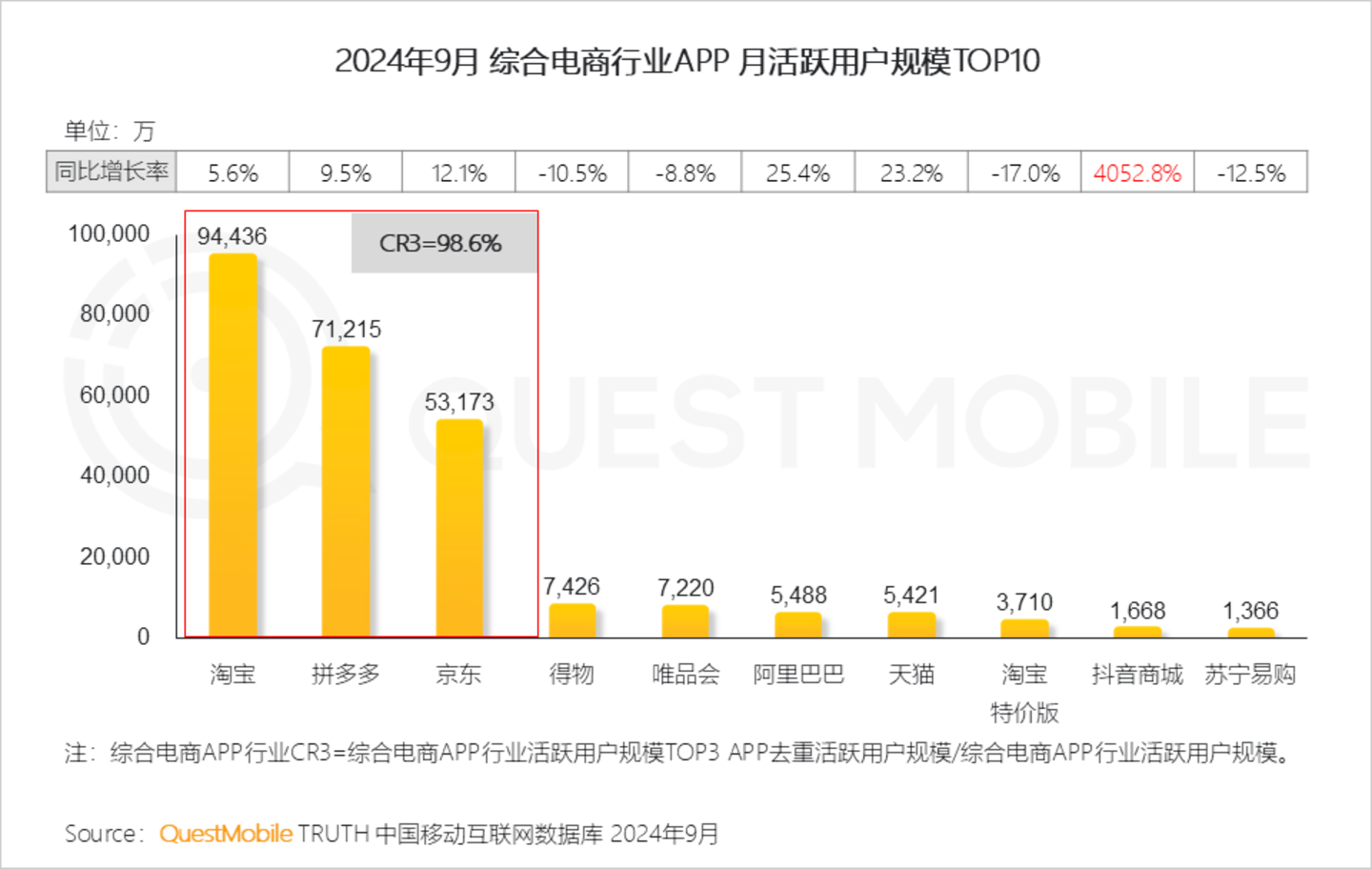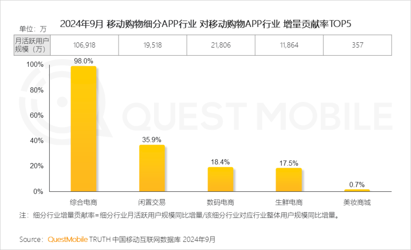 QuestMobile数据显示,2024年9月移动购物APP行业月活跃用户规模同比增长6.1%,达10.91亿。