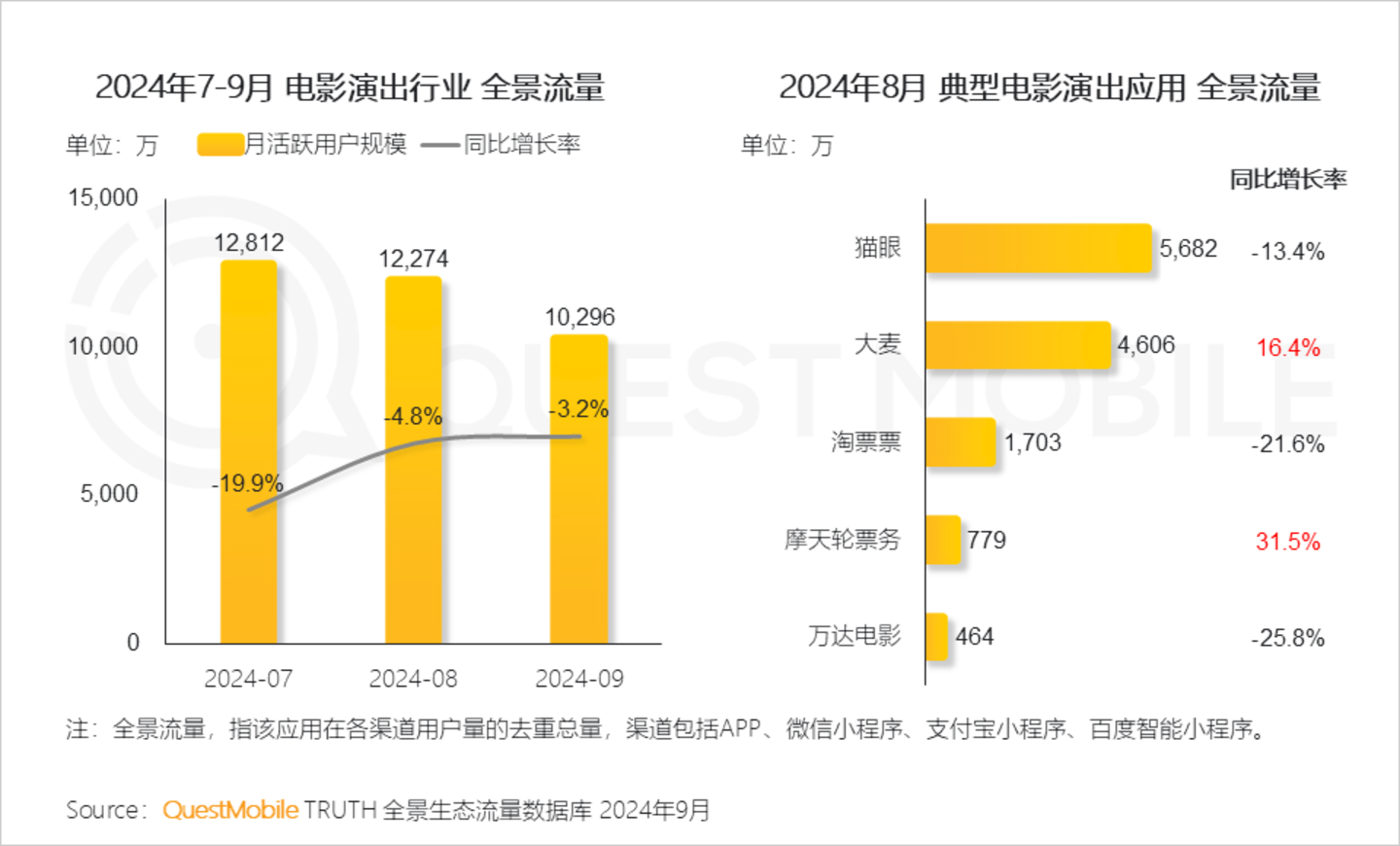 Ⅵ. 三季度未出现爆款影片,行业流量相比去年有所下降;暑期大型演唱会热度持续走高,主要购票平台大麦及摩天轮票务,8月的流量实现较高增长