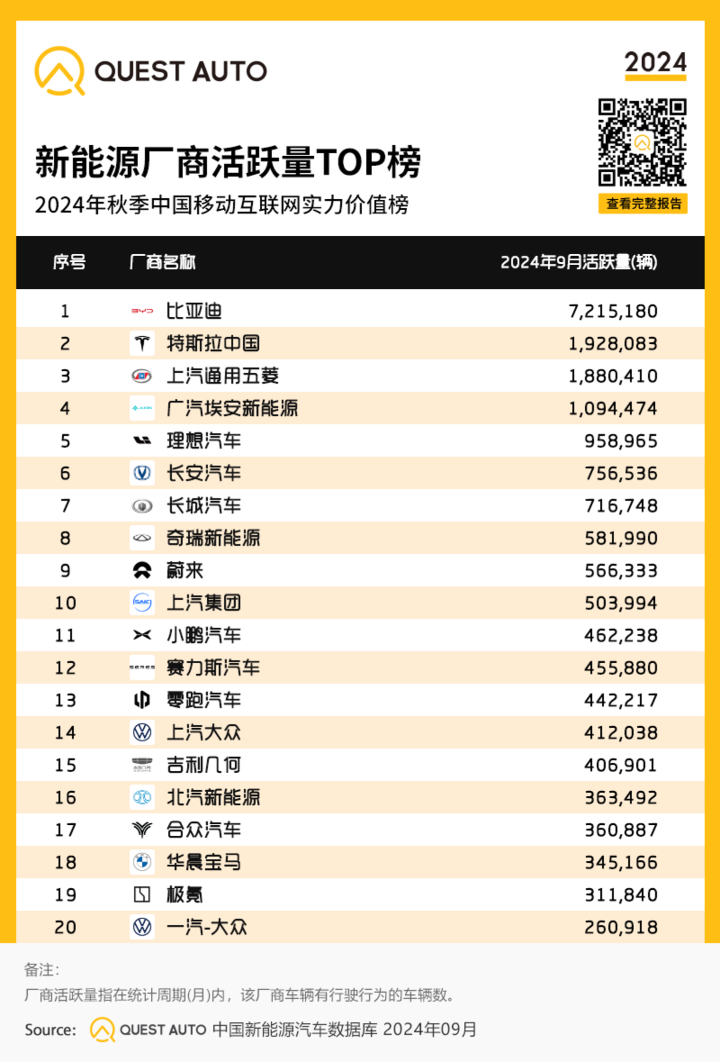 10、新能源厂商活跃量TOP榜