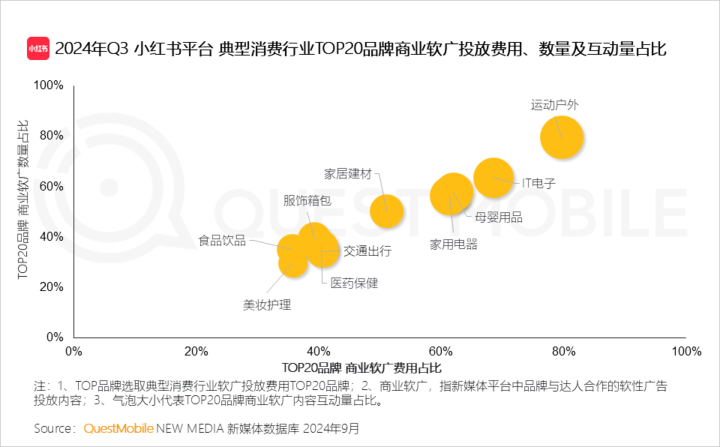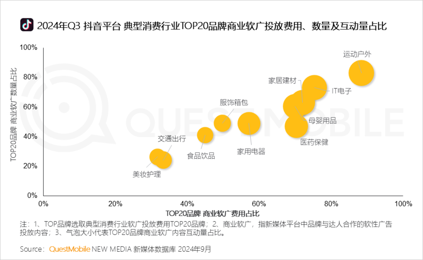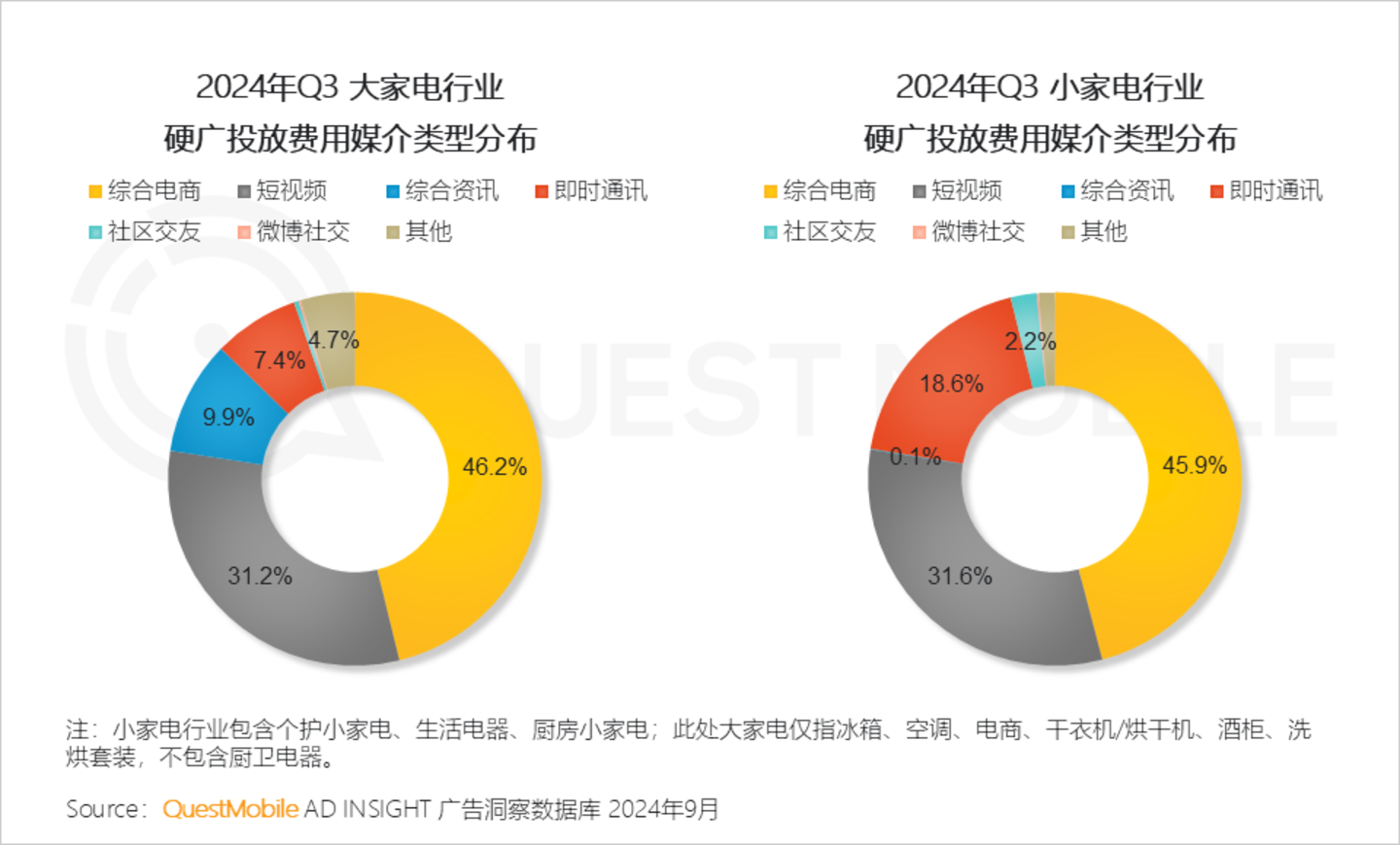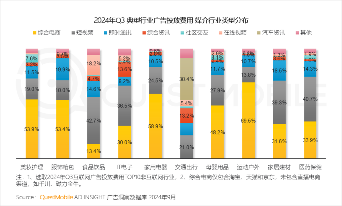 QuestMobile数据显示,2024年Q3,运动户外、家用电器、美妆护理、服饰箱包行业投放综合电商媒介广告占比均超50%。