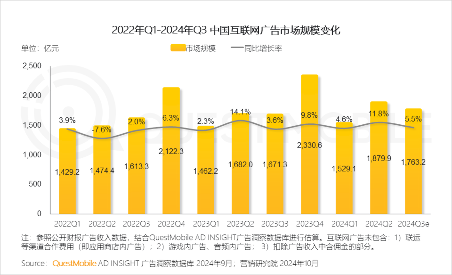 QuestMobile数据显示,2024年Q3互联网广告市场规模同比增长5.5%。