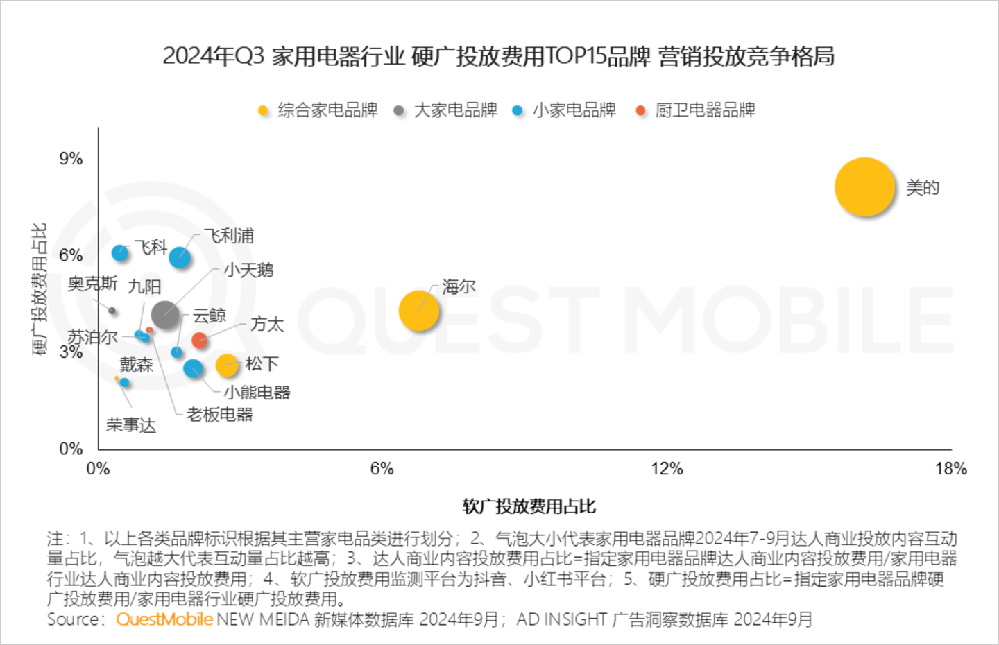 Ⅱ. 从整体家用电器行业品牌来看,综合家电品牌营销硬软广投放领先,小家电品牌另辟蹊径,通过软广投放进行追赶