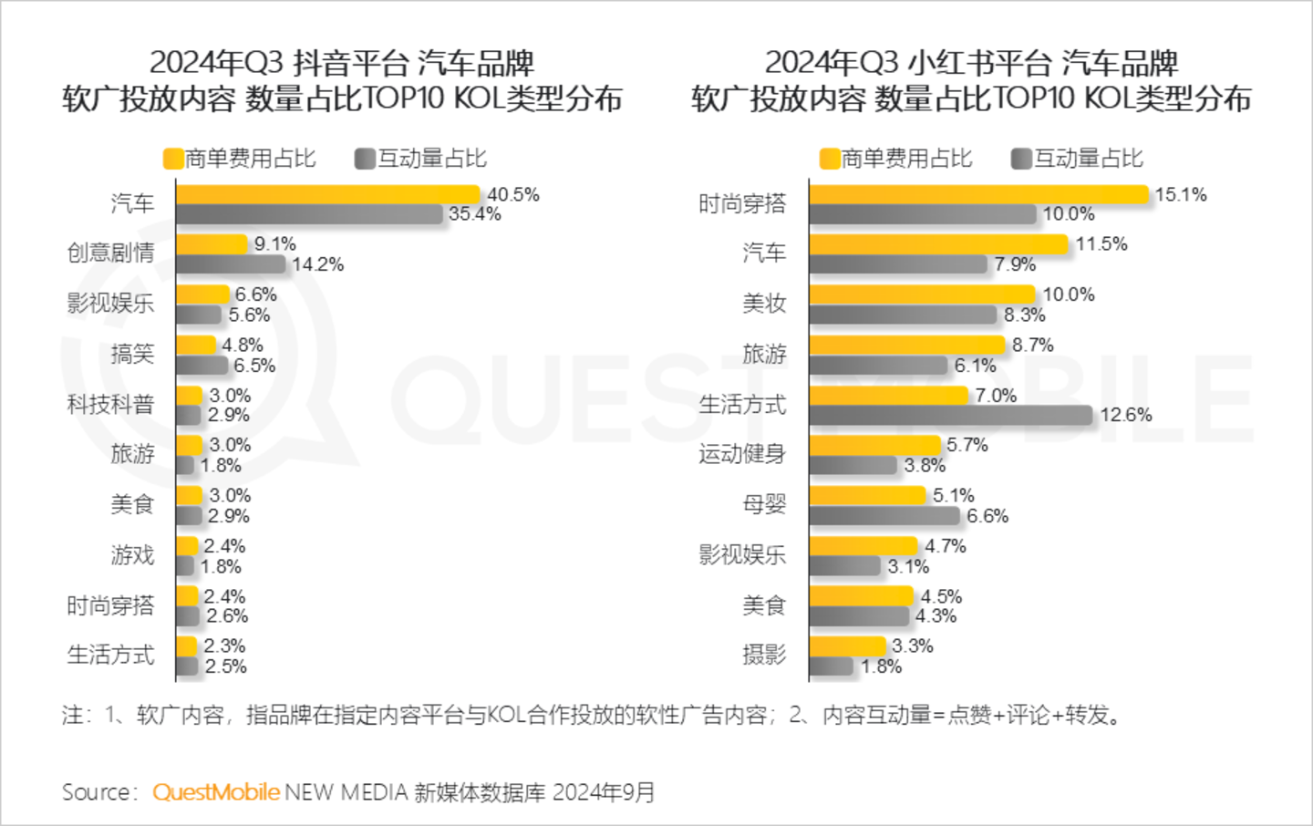 抖音以汽车+创意剧情为主要投放内容,小红书由于其平台女性用户为主,以时尚穿搭+汽车为主要投放内容,同时生活方式等内容互动效果较好。