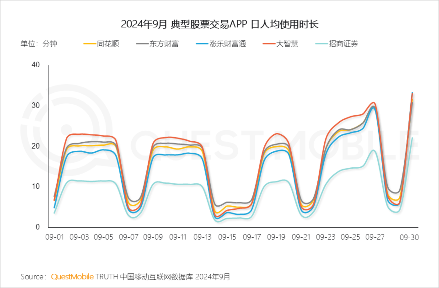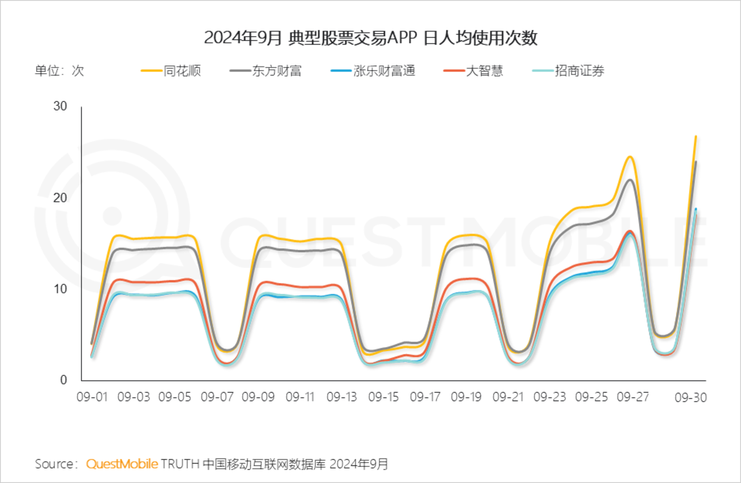 Ⅵ. 从9月24日开始A股持续上涨,9月30日三大股指大幅高开,进一步激发用户使用股票交易APP的热情