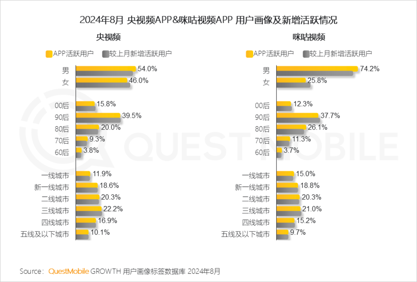 Ⅴ. 作为巴黎奥运会两大实时转播平台,央视频和咪咕视频新增用户与自身用户结构差异较小,其中男性用户相较突出