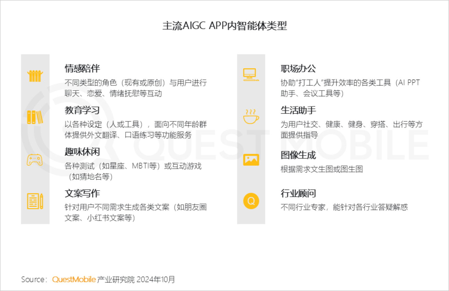 2.10 主流原生应用内智能体大致可分为八大类,包含情绪供给、生产力工具、生活助理、行业顾问四种定位