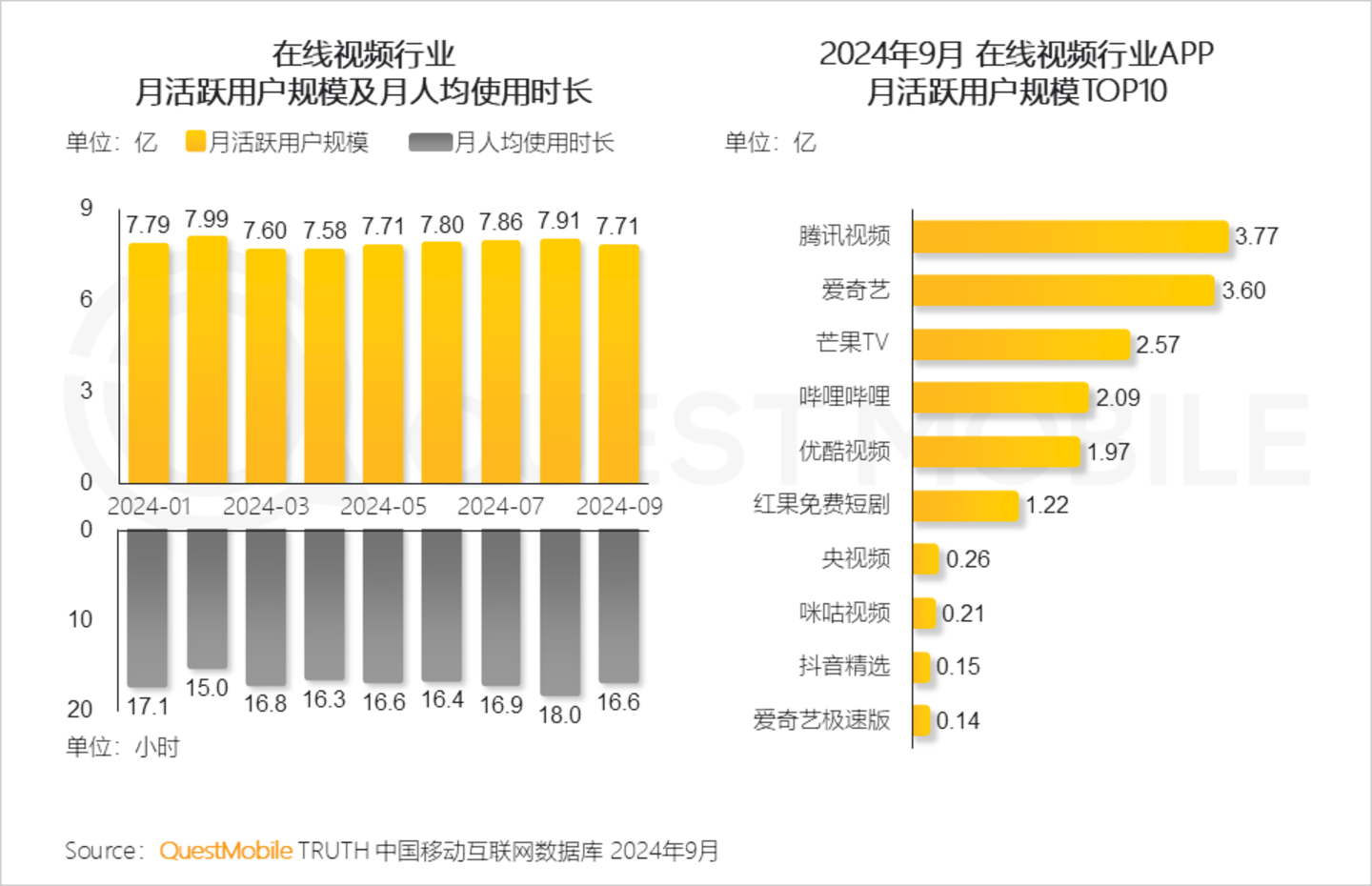QuestMobile2024年数据显示,在线视频行业在8月再度迎来流量高峰,月活跃用户规模达7.91亿,月人均使用时长达到18小时。
