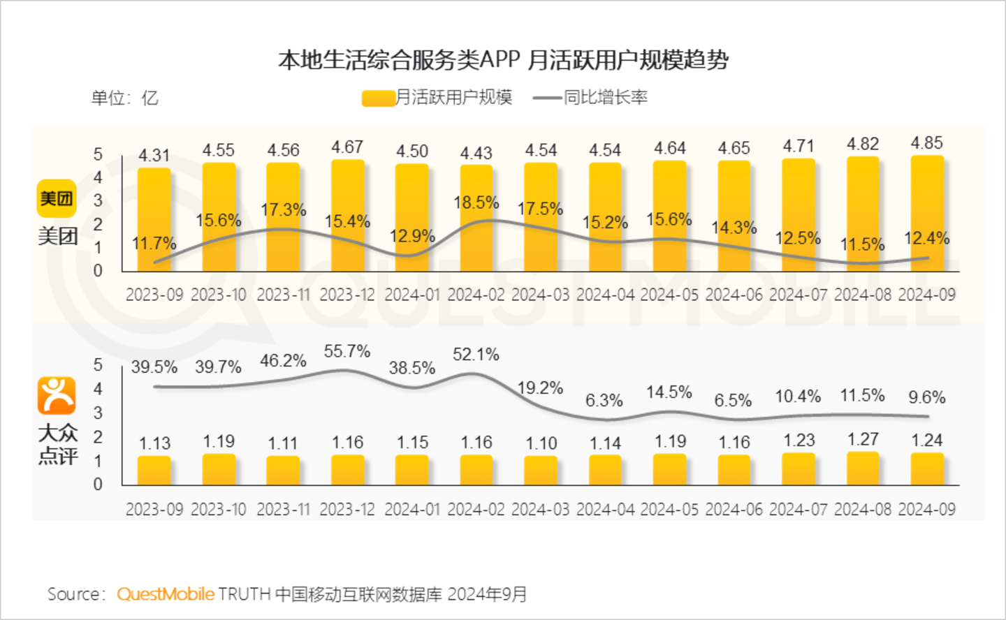 QuestMobile数据显示,2024年9月,全网月活跃用户规模达到12.44亿,同比增长1.7%。