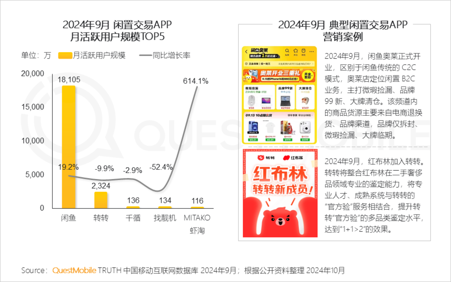 Ⅶ. 闲鱼、转转等闲置交易平台通过开创特色玩法和加码布局二手奢侈品,促进平台用户活跃;二次元购物平台MITAKO虾淘凭借热门动漫周边,满足用户对动漫IP的收藏需求,其规模同比增长率高达614%