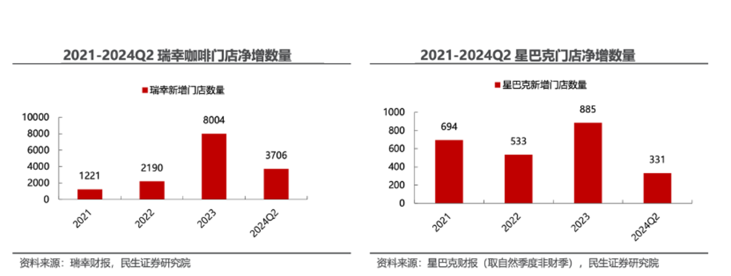 2021年星巴克新开门店接近瑞幸的一半,2022年为1/4,但在竞争最为激烈的2023年,其新开门店仅是瑞幸的1/10,2024年Q2甚至降为1/12。