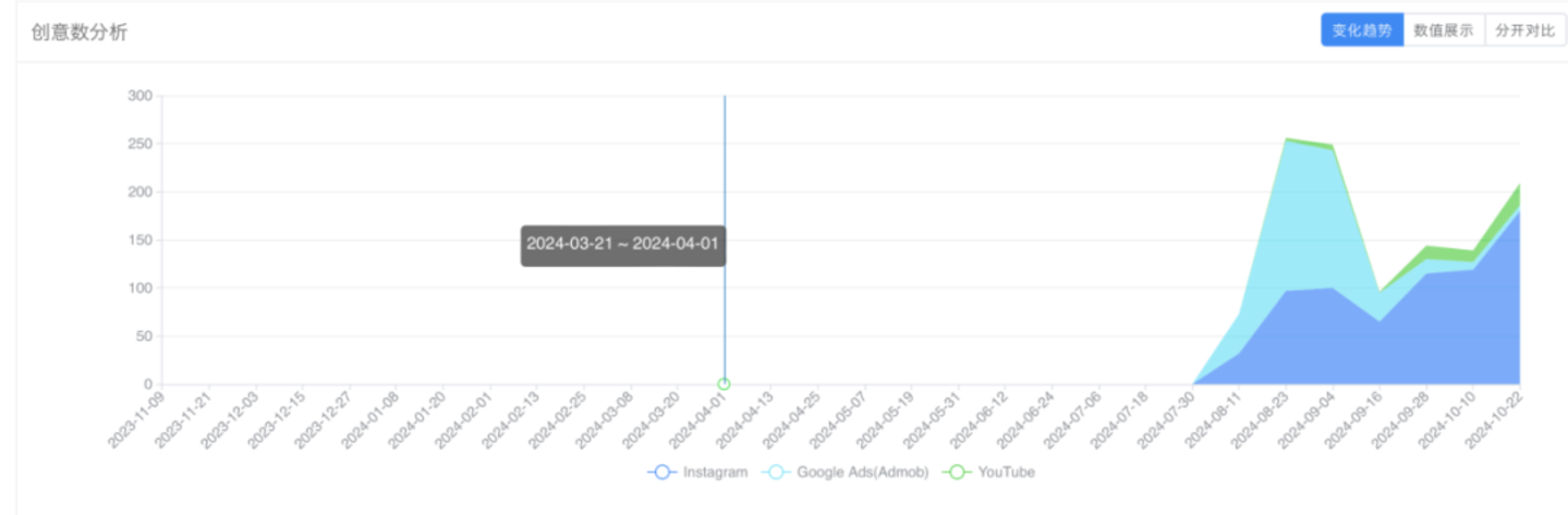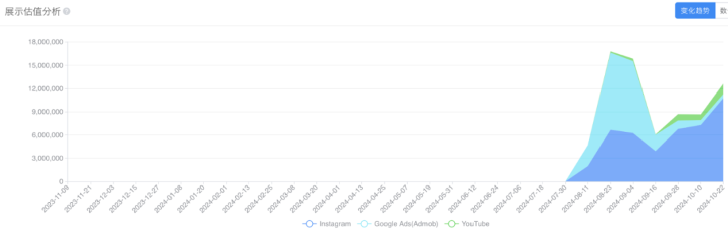 而从 9 月初开始,PicPic 调整了投放策略,大幅减少了在 Google Ads 的投放,把重点基本放在了 Instagram 上。从广告投放情况来看,Google Ads 渠道素材量和预估展示次数从 60% 左右,下降到不到 20%,而且根据笔者粗略统计,由 KOL 制作的社媒推广内容开始频繁出现。