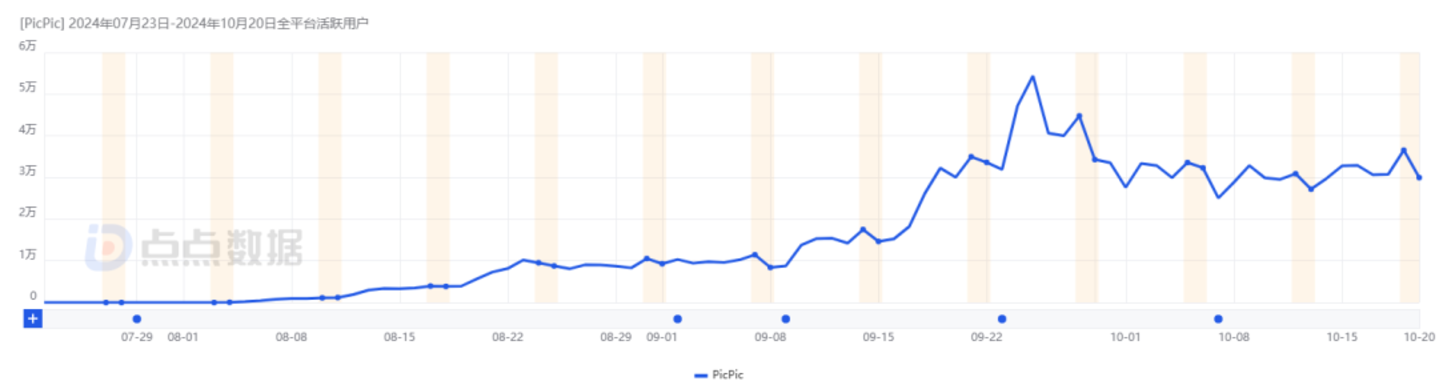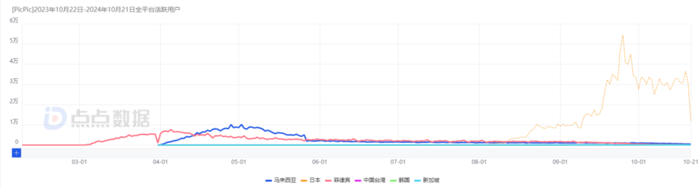 PicPic 日本市场 DAU 数据|图片来源:点点数据