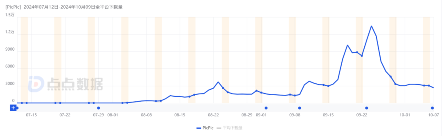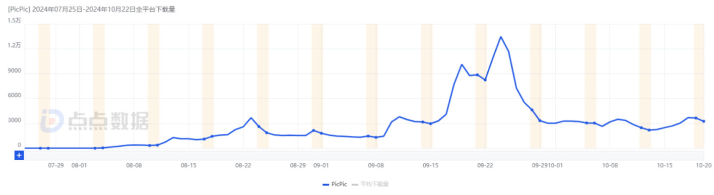 8 月至今 PicPic 的下载量|图片来源:点点数据