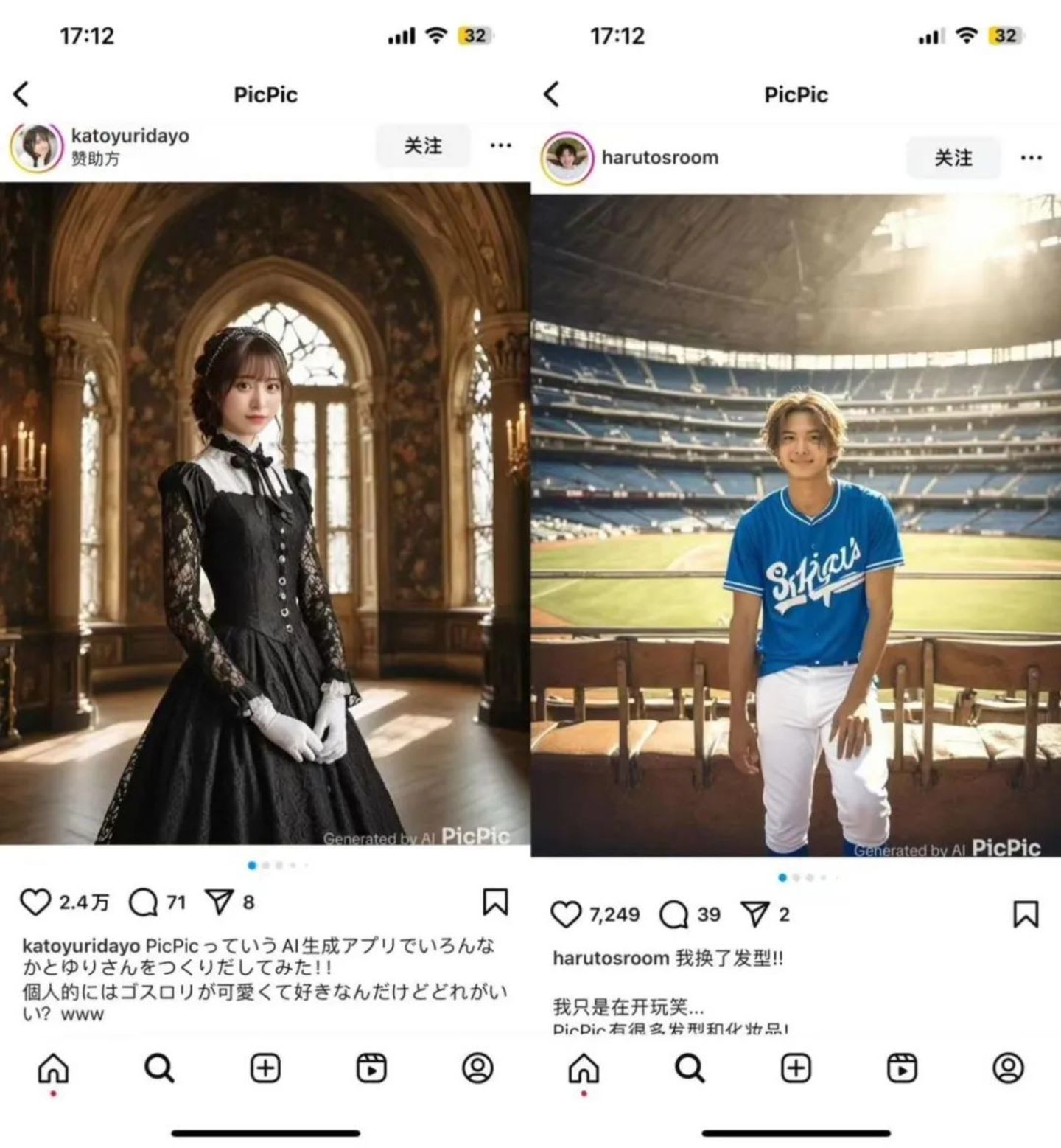 而从社媒上有关 PicPic 或带有“#picpic”Tag 的帖文来看,大多是一些颜值博主发布自己用 PicPic 制作的照片,然后在文案中推荐 PicPic 的模式,在发布图片时也会着重地露出“Generated by AI PicPic”的水印。从点赞和评论的情况来看,多条内容点赞可以达到 2-5 万,也能有几十甚至上百条评论,点赞量能够上千的帖文也很多,而下载量的峰值也在这一时期出现。