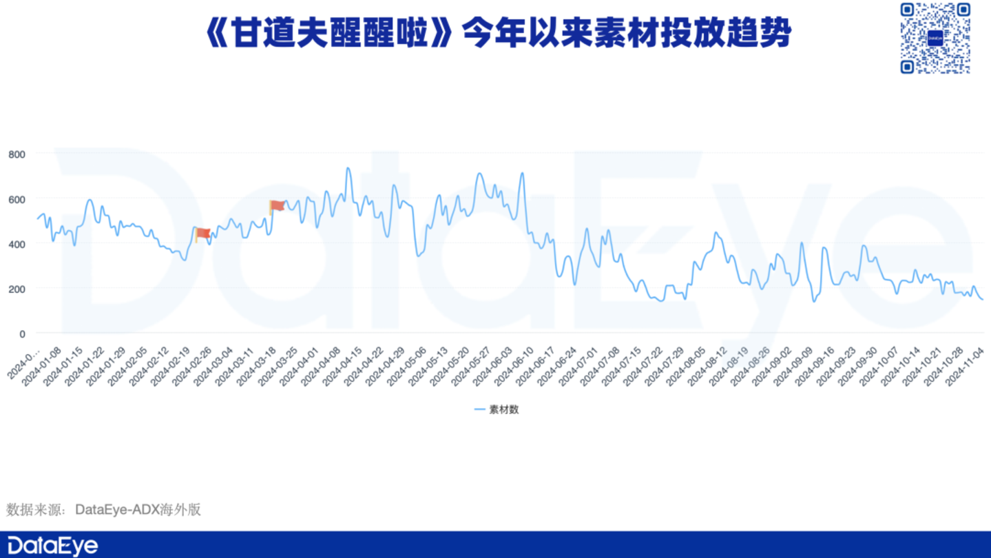 有产品营销策略转变,也有产品仍在持续输出常规型素材,如《甘道夫醒醒啦》、《暴走小虾米》等。但《甘道夫醒醒啦》的素材投放量在今年是处于持续下滑的趋势。