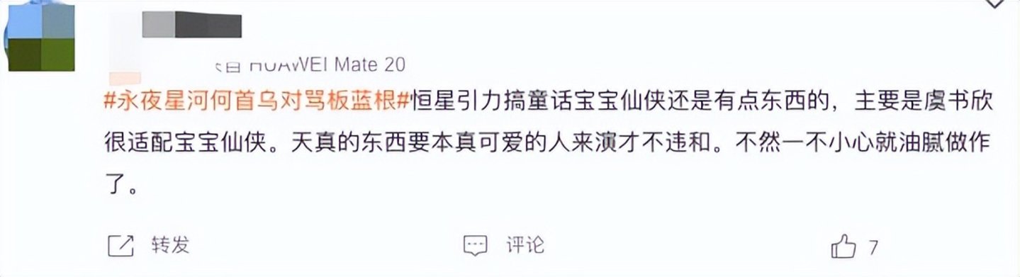 这并非虚言。在微博等社交平台上,网友虽然仍在吐槽其“爱与和平”的重度爱好、对其编剧短板直言不讳,但也重新开始探讨恒星引力和“宝宝仙侠”的适配度、甚至开始呼吁虞书欣和恒星引力的三搭。
