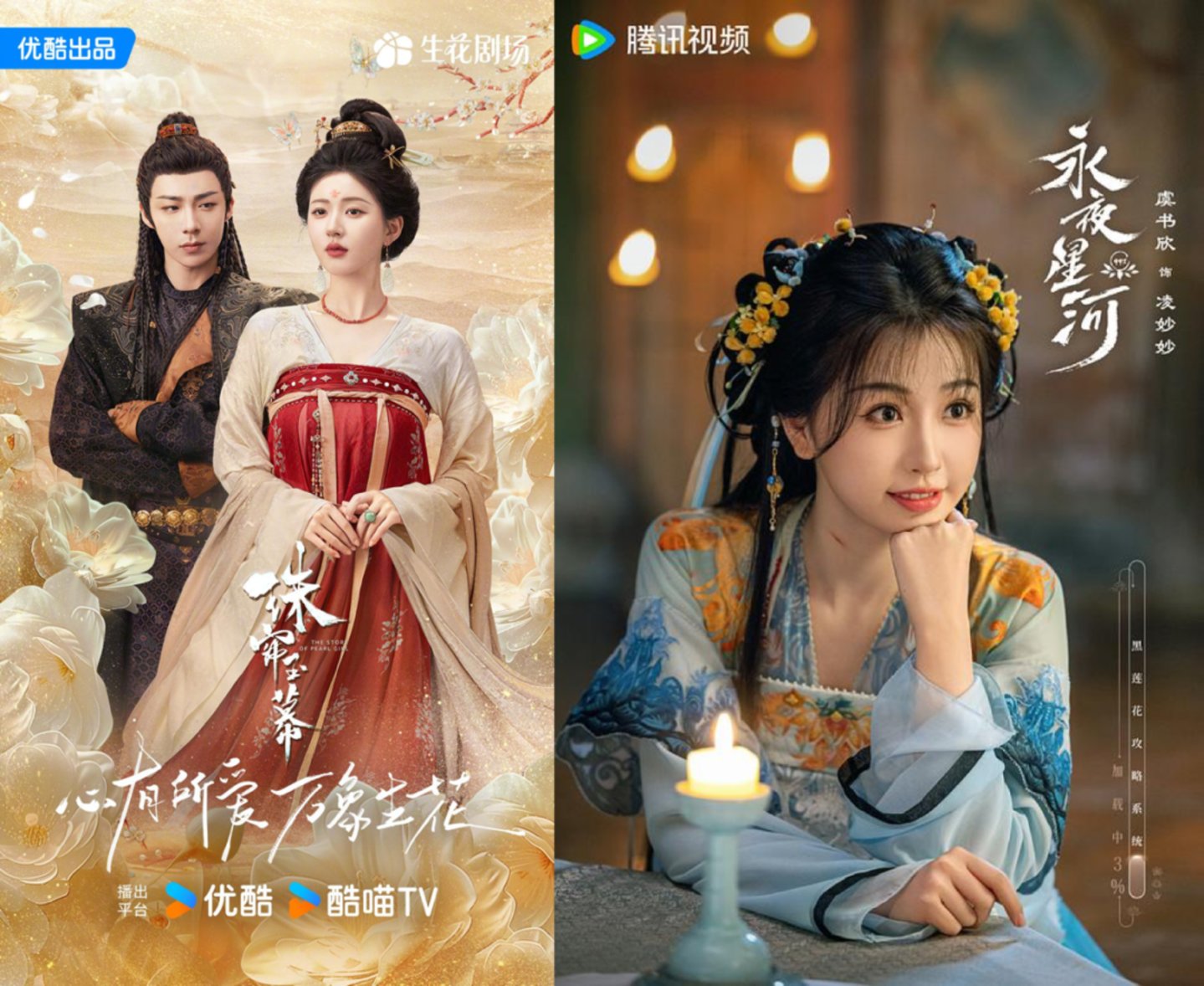 赵露思和虞书欣的扛剧花之战,《珠帘玉幕》和《永夜星河》之争,与两年前的《星汉灿烂》和《苍兰决》有着诸多相似之处:同样是古偶之争,同样是题材类型截然不同,同样是一部落地、一部“奇幻”。时隔两年,熟悉的局面上演,战况如何?