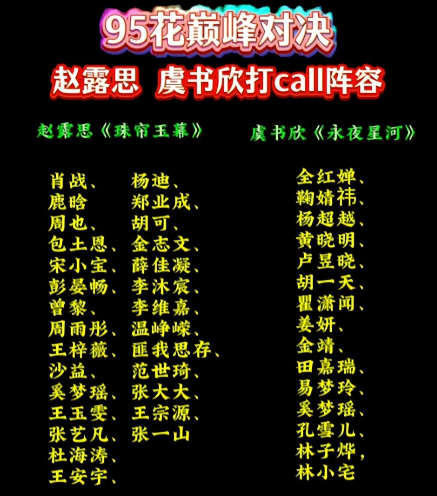 “摇人”式剧宣吸引了最多的讨论度。明星帮忙剧宣本不是新鲜话题,但此番却因为参与者众多、声势浩大而成为行业议题:据网友不完全统计,赵露思“摇”来了超60位明星参与,其中包括肖战、鹿晗、周雨彤等话题人物;为虞书欣奔走打call的也有15位,包括全红婵、鞠婧祎等。
