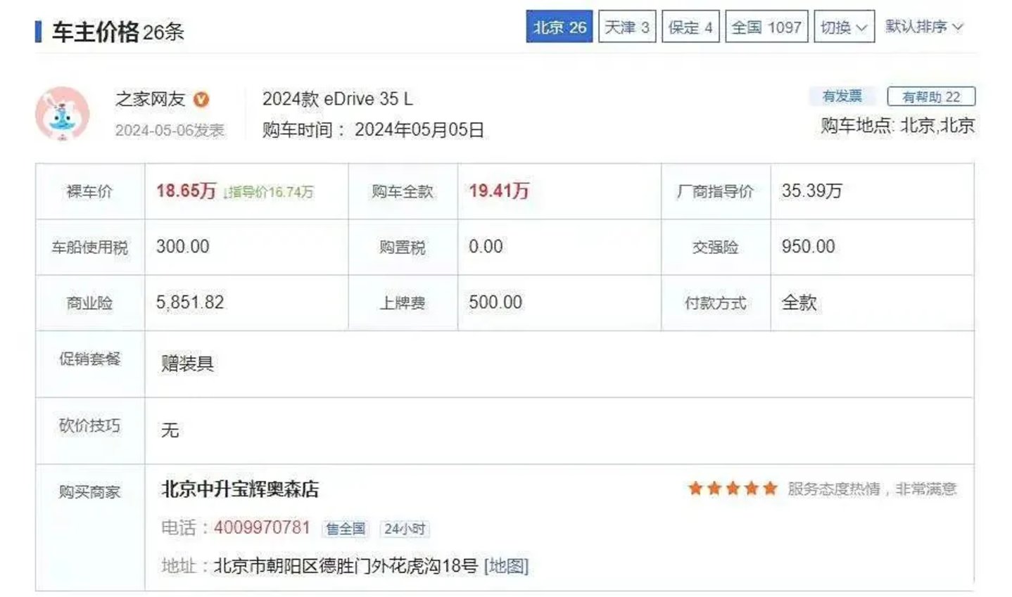 颇为讽刺的是,本就在产品力上竞争不足的BBA新能源车,在自主品牌已经做到“油电同价”甚至“电比油低”的时候,仍然保持着“高贵”的身价。