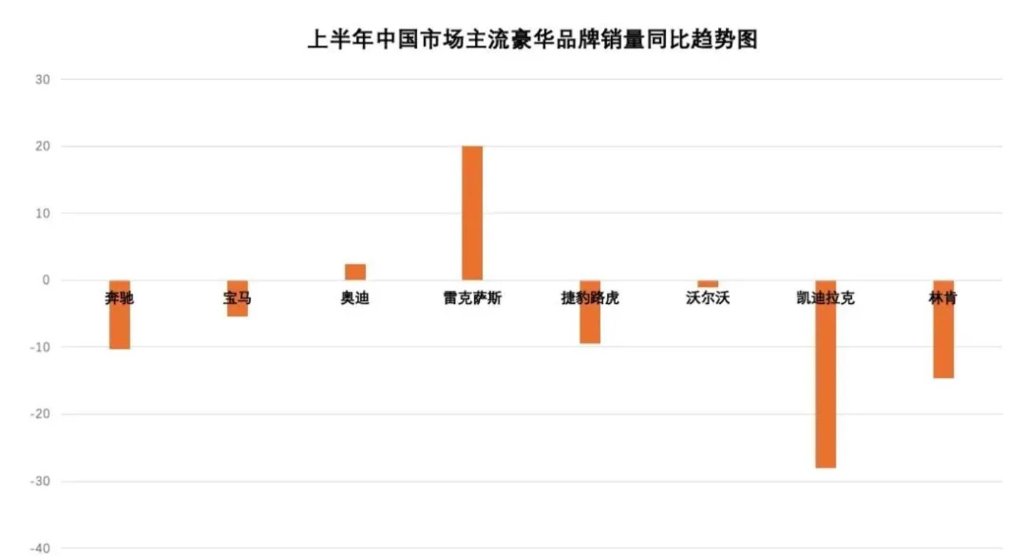 图/2024年H1中国市场主流豪华品牌销量同比 来源/互联网 新能源观截图