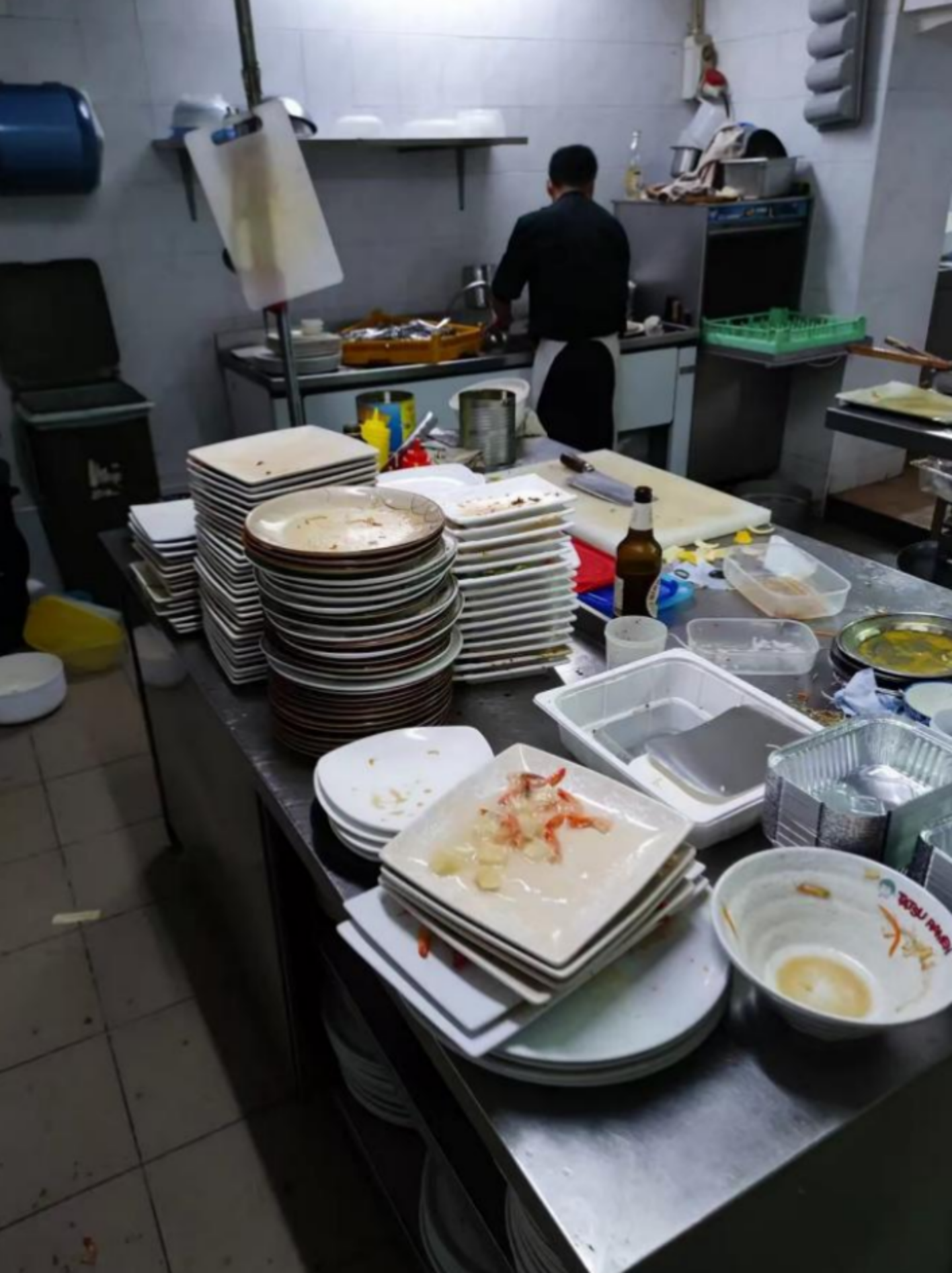 长期在厨房工作,李然手上多了不少小伤口。洗碗时手湿了又干、干了又湿,皮肤更脆弱,厨房有尖锐或硬的东西,就容易划伤或撞伤手,有伤口后洗碗时一直在疼。