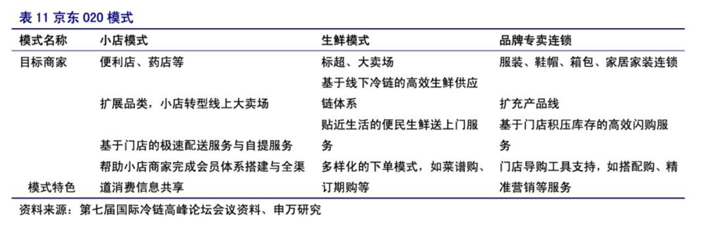 京东最早做生鲜始于2013年前后,基于O2O战略,京东与线下便利店、卖场进行合作,消费者可以在京东上找到最近的线下便利店,这些便利店也可以在京东平台上开设线上卖场、生鲜超市等业态。