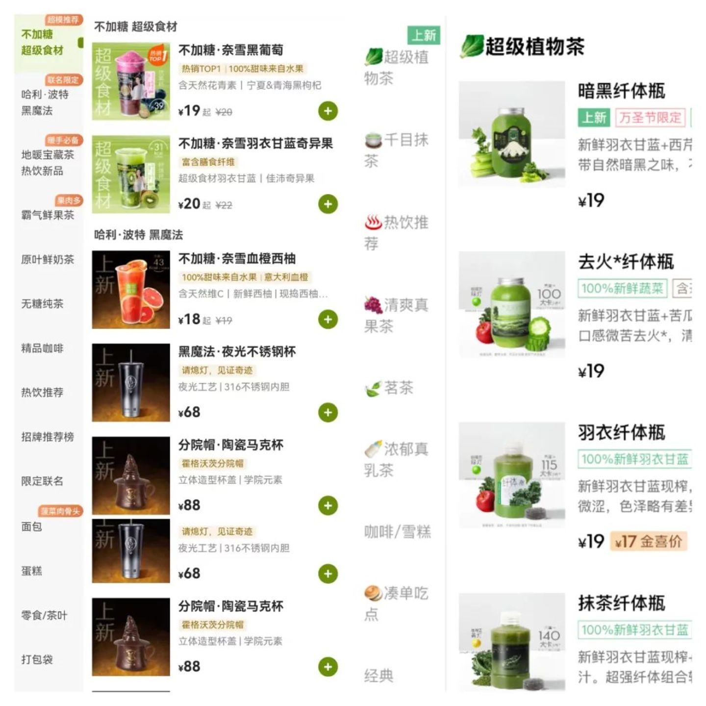 (左为奈雪的茶点单小程序,右为喜茶点单小程序)