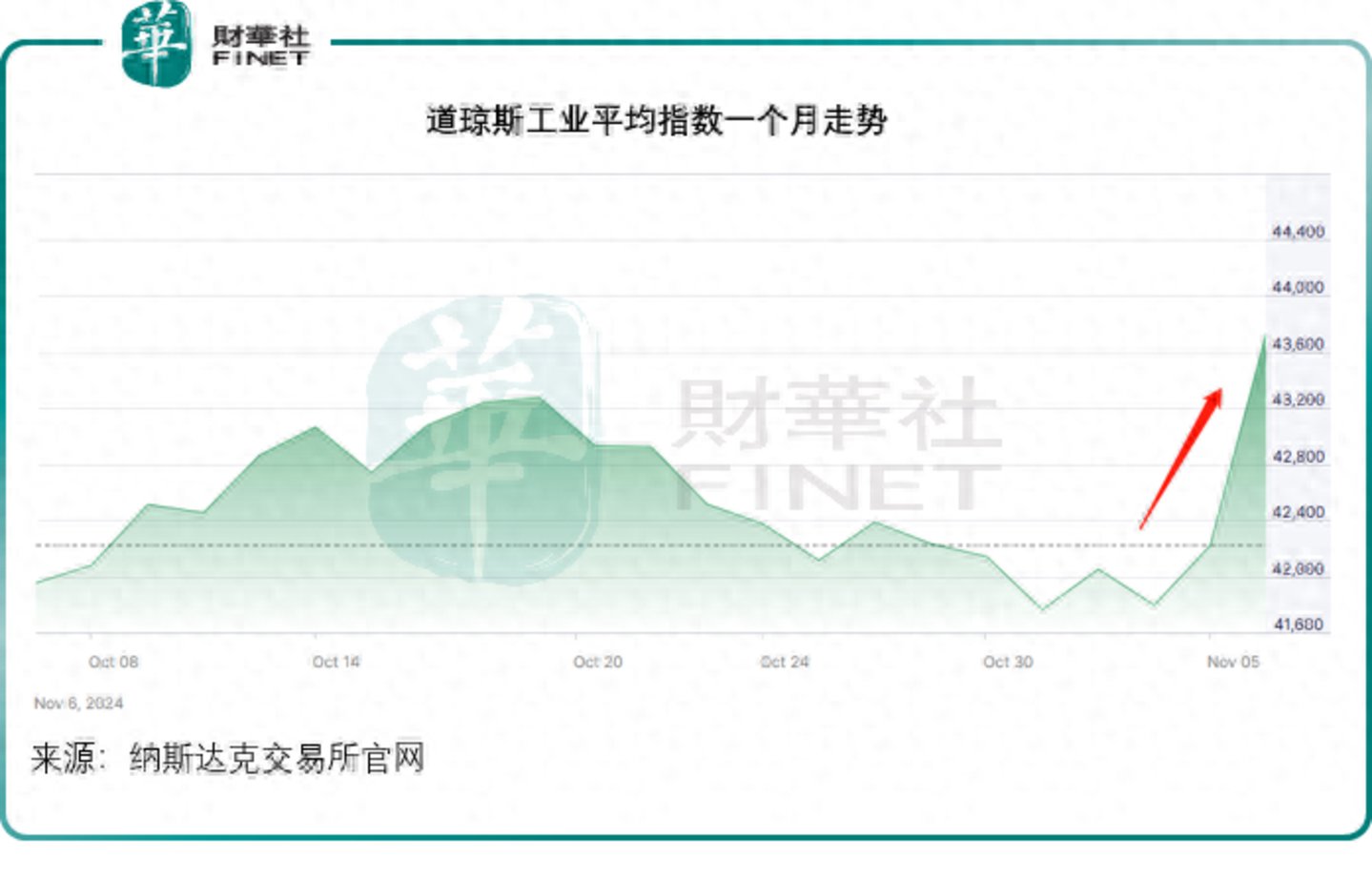 道琼斯工业平均指数(DJI.US)狂飙1508点,或3.57%,收报43,729.93点,这也是该指数2022年以来的单日最佳表现,其中重磅股高盛集团(GS.US)和摩根大通(JPM.US)均实现单日双位数的股价涨幅,分别大涨13.10%和11.54%,成为这一大盘股指数的主要推动力。