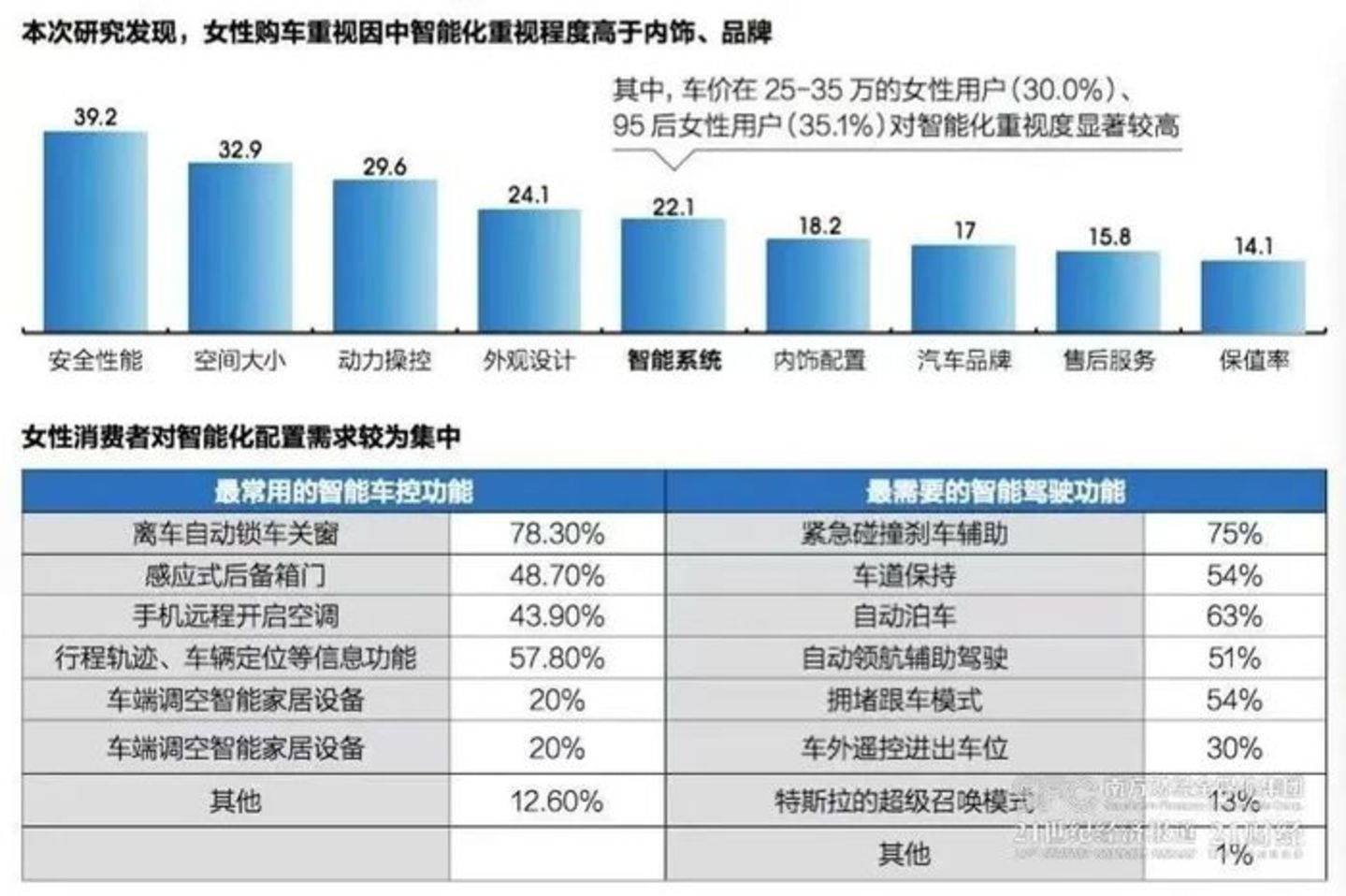 其中,车价在25-35万的女性用户(30.0%)、95后女性用户(35.1%)对智能化重视度显著较高。