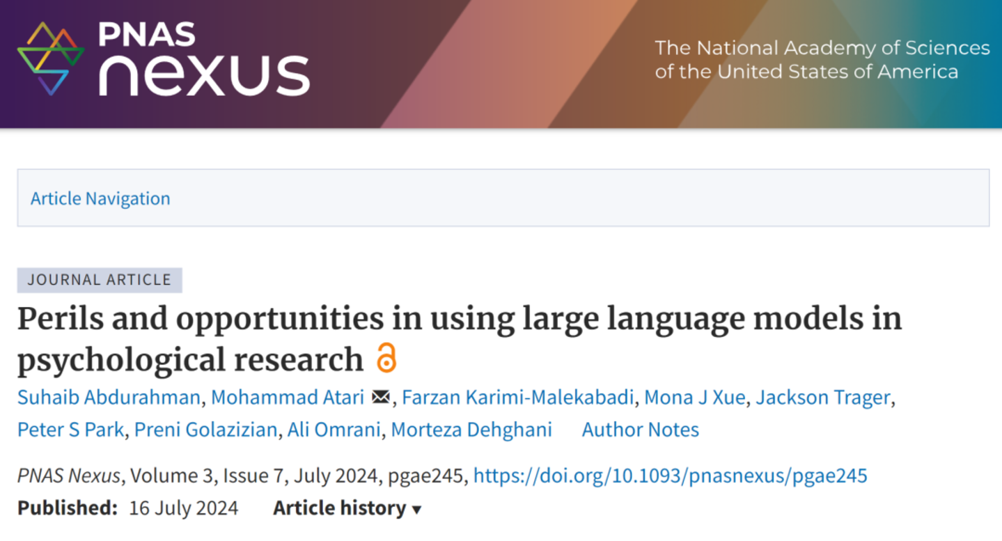 可以说,我们已经进入了与大语言模型相处的“冷静期”,除了思考大语言模型可以做什么,我们更需要反思是否以及为何要使用它。近日PNAS Nexus的综述论文便探讨了大语言模型在心理学研究中的应用,及其为研究人类行为学带来的新机遇。