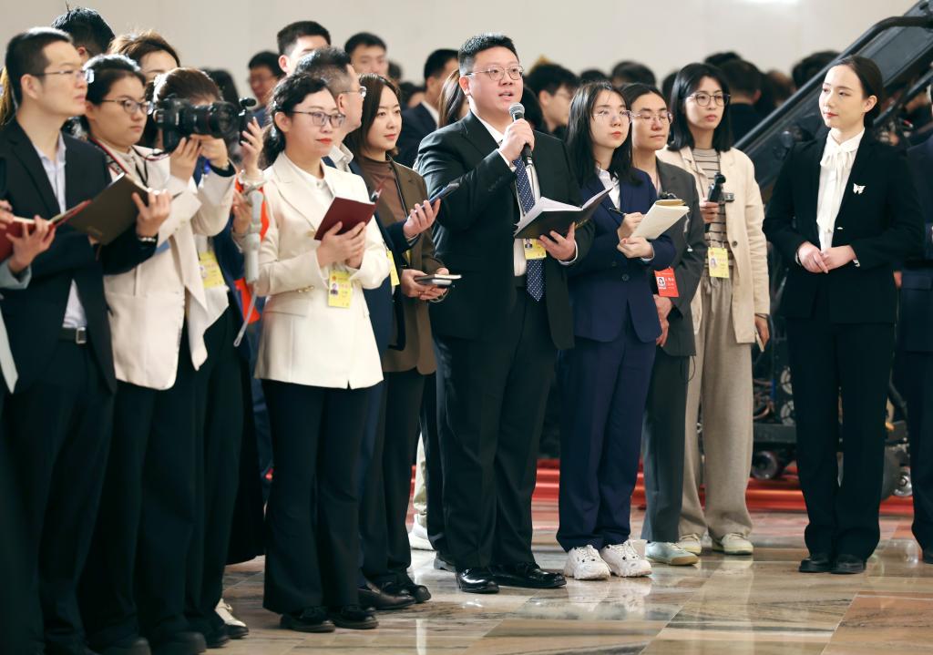 3月9日,第十四届全国人民代表大会第四次会议第二场“代表通道”集中采访活动在北京人民大会堂举行。 新华社记者 傅天 摄
