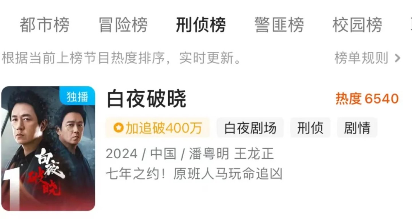 在陆寻看来,《白夜破晓》之于优酷,就像《狂飙》之于爱奇艺、《庆余年》之于腾讯视频——一个足以载入公司大事记的大爆剧。