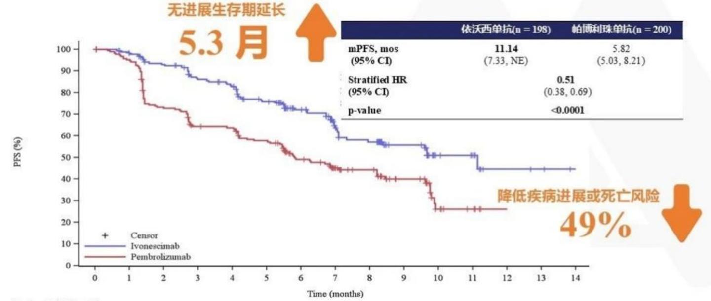这意味着依沃西单抗成为全球首个且唯一在III期单药“头对头”临床研究中打败了K药的药物。