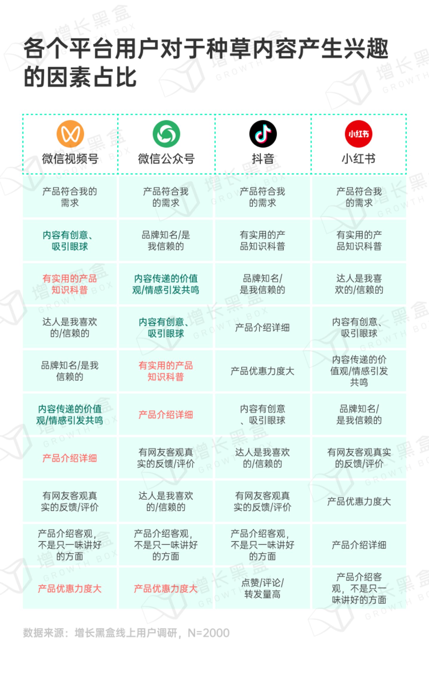 因此,照搬其它平台的达人种草策略到微信生态里也许是行不通的。接下来,我们就用数据来解读微信生态在多个的维度上的差异化。