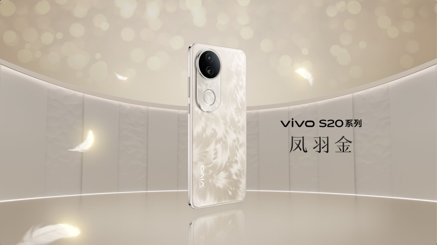 以S20系列的凤羽金配色为例,它通过工艺创新,模拟凤凰羽毛柔软又华丽的特质,控制不同线条组合成的几何结构和切面的角度,S20系列可以在光线照射时,产生类似金丝凤羽的丝线质感与视觉效果,原本单调的手机背板被赋予了更复杂的层次感和艺术表现力。