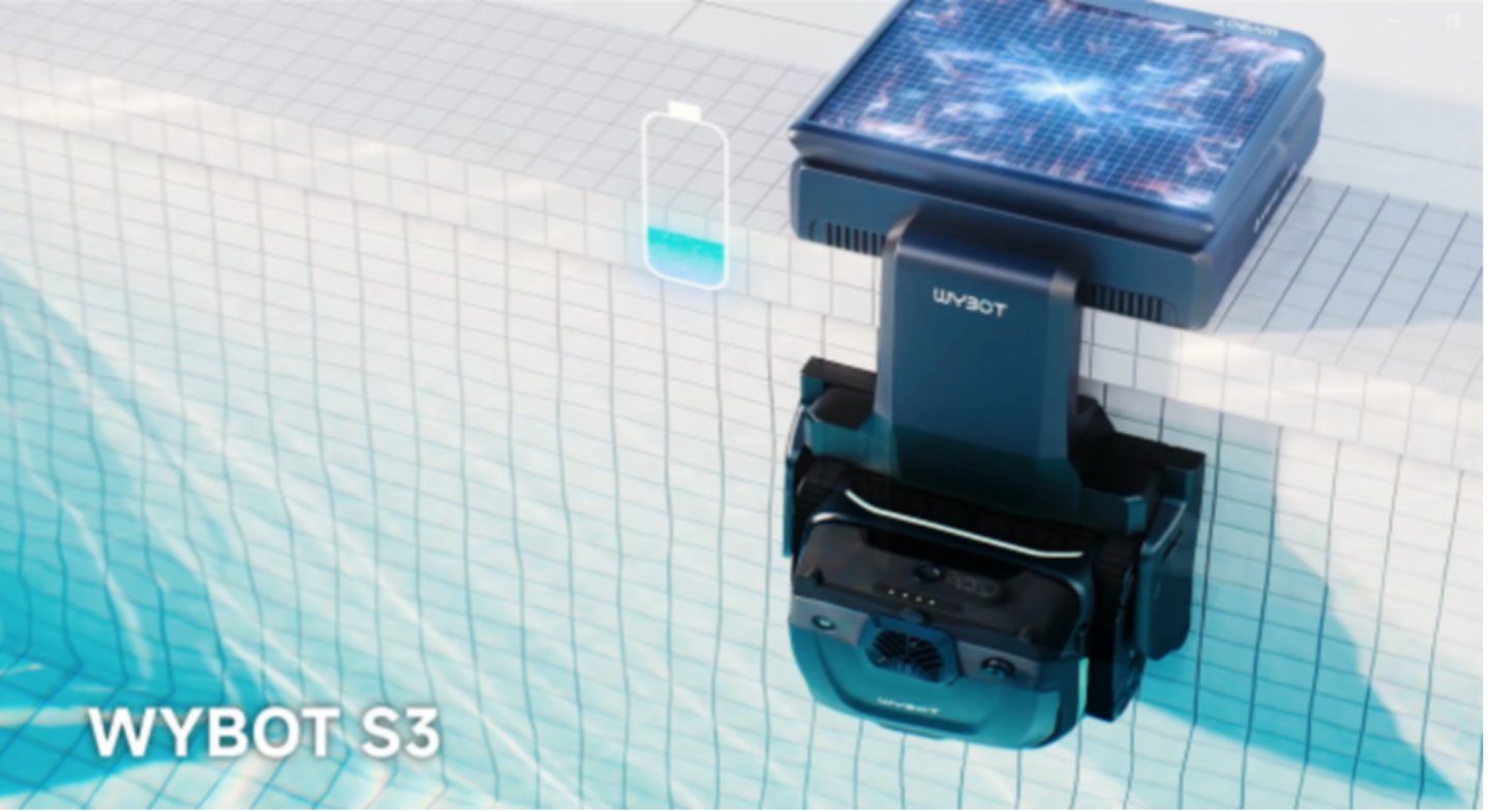同时,S3几乎完全解放了用户的双手。它具备自动清理集尘盒的功能,清洁结束后会将垃圾转移到岸边的集尘箱,免去了用户每次手动清洁的烦恼。此外,S3还配备了自主回桩功能和太阳能充电系统。在完成清洁任务后,机器人会自动返回充电桩充电,太阳能充电系统则确保其能够实现长时间的自主作业。得益于这一创新,S3可以实现长达一个月的免干预工作周期,持续保持泳池的清洁。