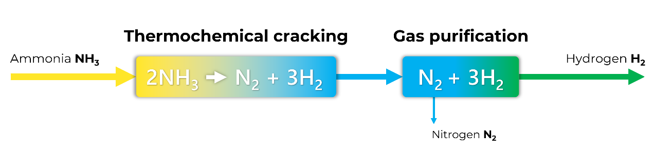 与氢气相比,氨具有更高的能量密度和更好的可扩展性,可与现有加油站等基础设施良好兼容。同时,氨气易于制造,可实现大规模生产,能以液体形式安全储存和运输,使用便捷。Neology的氨裂解技术首先通过热裂解技术将氨气分解为氮气与氢气,再通过气体净化技术获得高纯度氢气。其氨制氢系统为200kW发电机组,由氨裂解设备与燃料电池构成,可直接安装于重型车辆内部,以经济、高效的方式为车辆燃料电池提供氢气,提升车辆动力并降低运输成本。该系统可离网和远程使用,全程静音运行,减少噪音污染,实现零排放及无碳运行。
