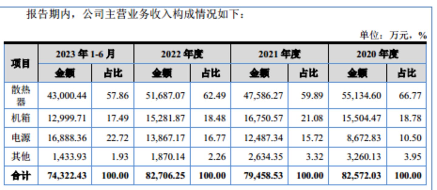 从产品上看,九州神风主要拥有散热器、机箱、电源、其他等产品,具体情况如下: